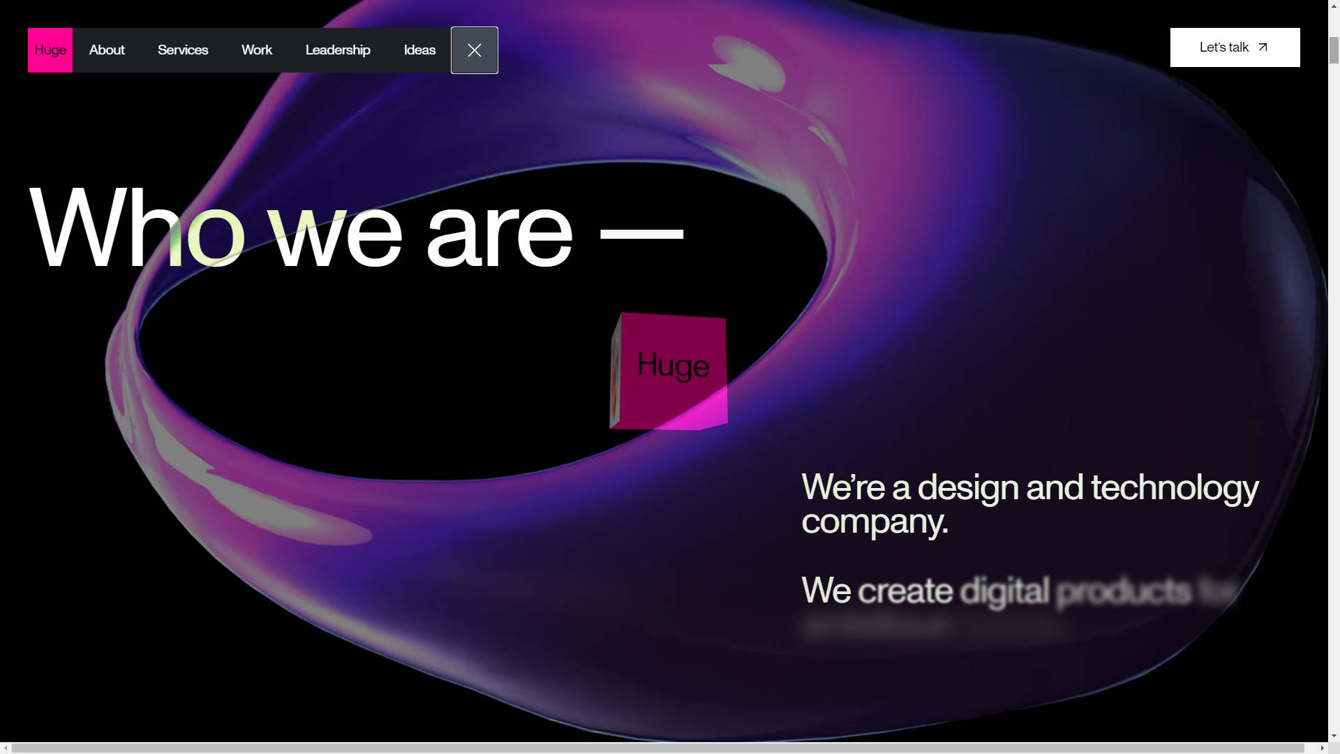 服务特色:Huge其设计服务包括品牌沉浸、概念生成、原型迭代等,拥有丰富的数字化服务经验,业务覆盖全国20多个省市,用户超过30万,致力于通过深入研究和多学科团队实现市场成功,。