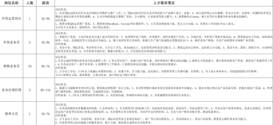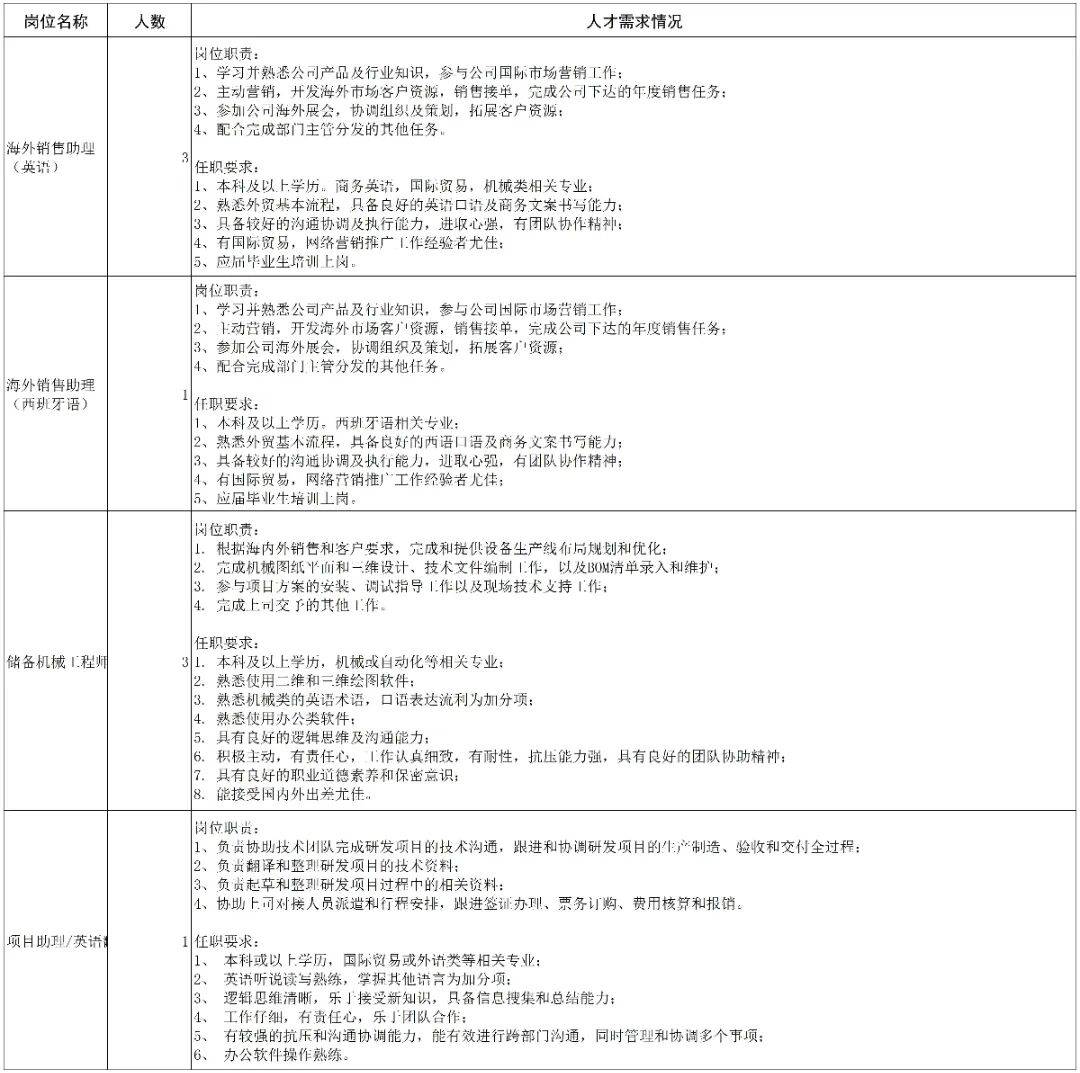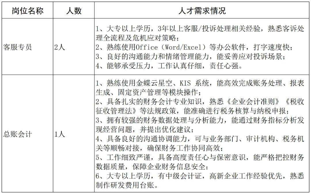 研发工程师/研发主管(1人)。要求大专以上学历,机械设计类专业,有3年以上康复辅具或同类产品的研发经验,有工程师职称者优先。