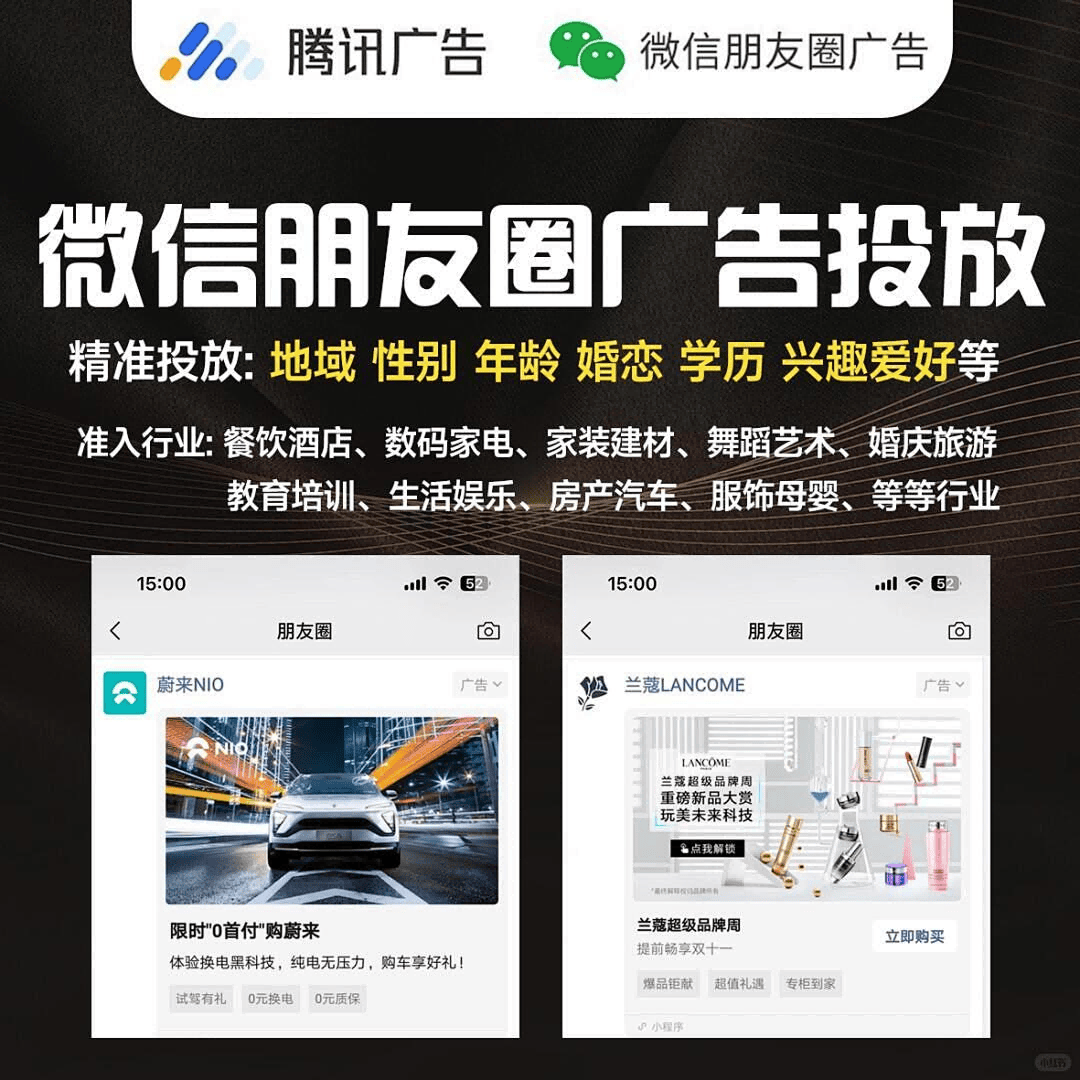 如今,微信拥有11亿+月活用户,朋友圈作为核心社交场景,早已成为全国各行业推广获客的必争之地。朋友圈广告无需巨额预算,几千块钱就能启动,精准定向、原生体验、效果可见,适配餐饮、教育、装修、零售、服务等全国所有行业,无论是中小商家的本地引流,还是品牌方的全国推广,都能轻松适配。